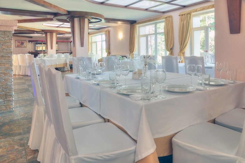 В центре есть ресторан, кафе и банкетный зал для организации пышных торжеств и праздников. Интерьер в большом банкетном зале выполнен в белоснежных тонах, зал подойдет под любое оформление и цветовую гамму.